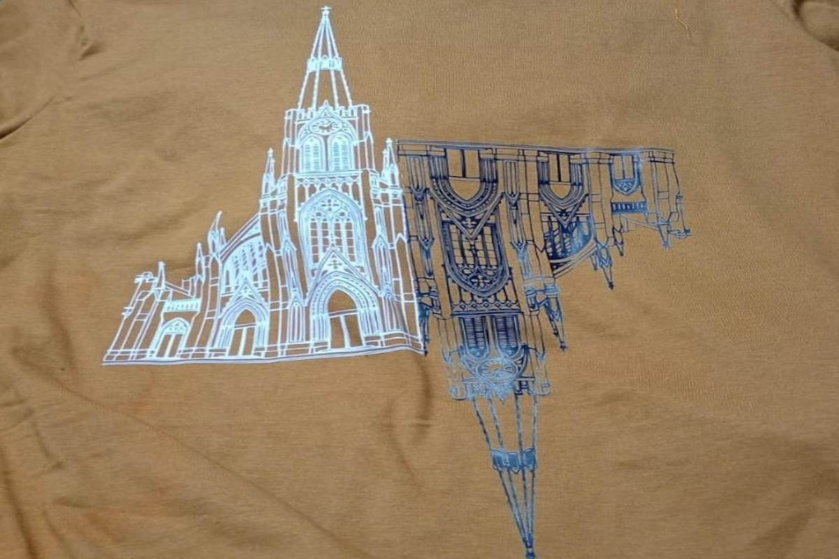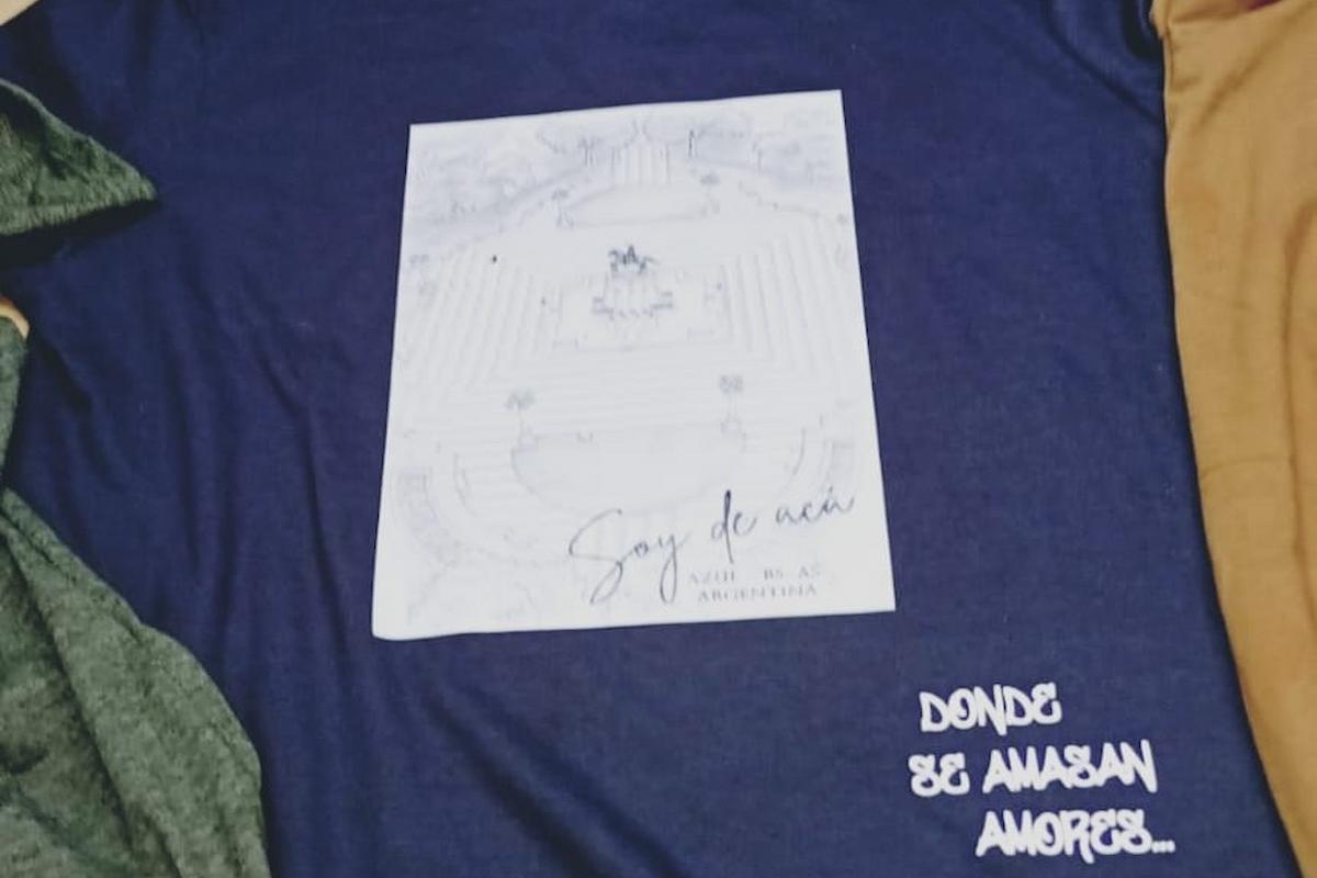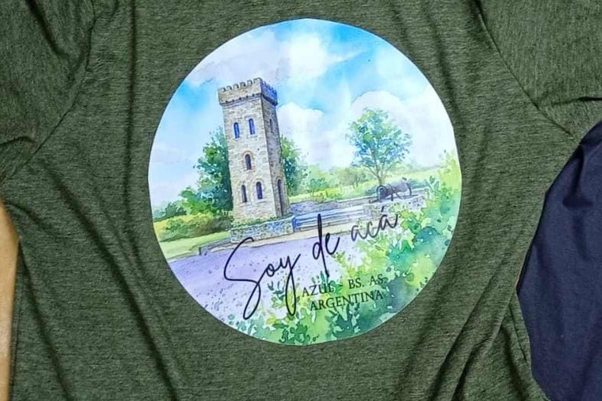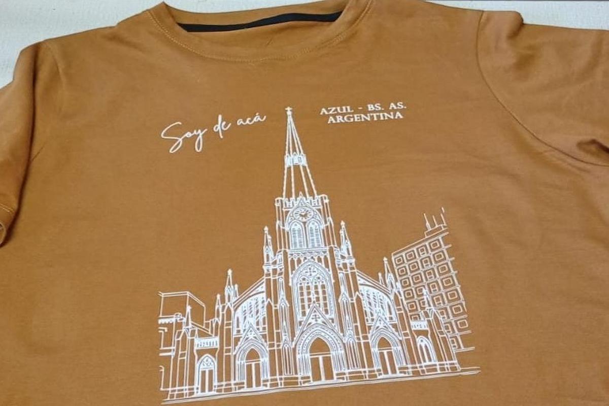 Tienen remeras de Azul con motivos de la catedral, la fachada del cementerio de Salamone, el torreón del parque, y el diseño la plaza central, entre otros.